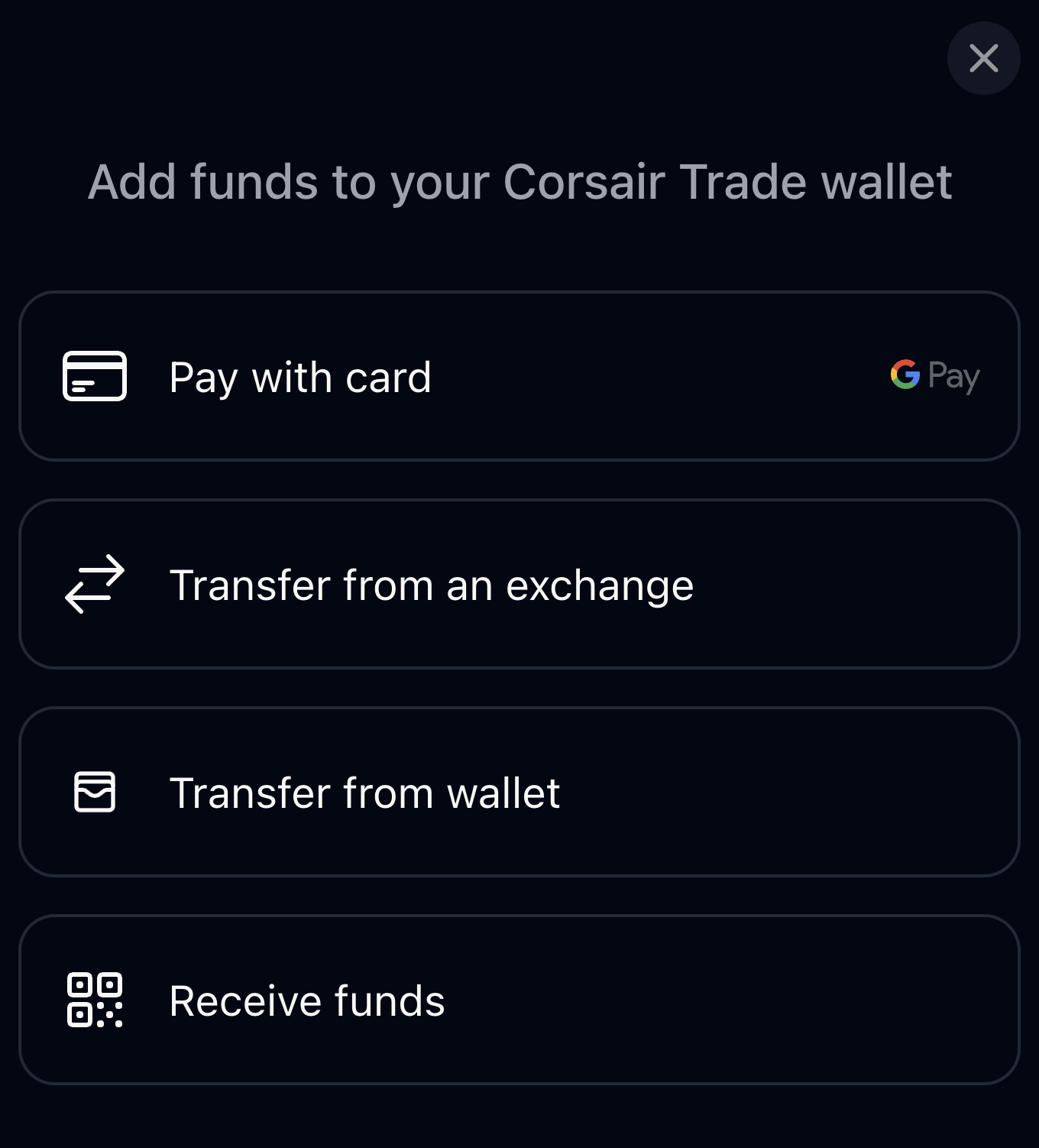 Deposit USD or CAD via credit card, wire, or crypto. Funds are available immediately.